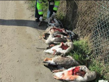 Hadden we deze week een dierenbeul die zonodig 2 pijlen moest afschieten op een onschuldige eend, nu is het verdomme weer raak. Want wederom zijn dierenbeulen tekeer gegaan op onschuldige ganzen deze keer.
