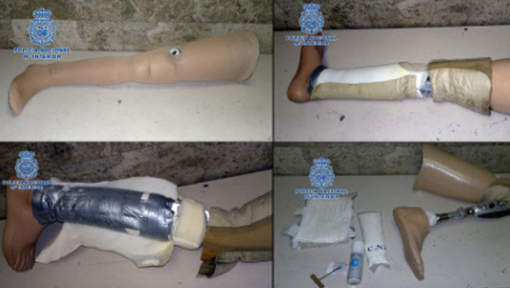 De politie heeft op de luchthaven van Barajas in Madrid een smokkelaar betrapt met 750 gram cocaïne in zijn kunstbeen.