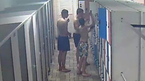 Op bewakingsbeeld is te zien hoe drie jongens het kluisje open maken en hoe één van hen daarna de portemonnee in zijn broek stopt.