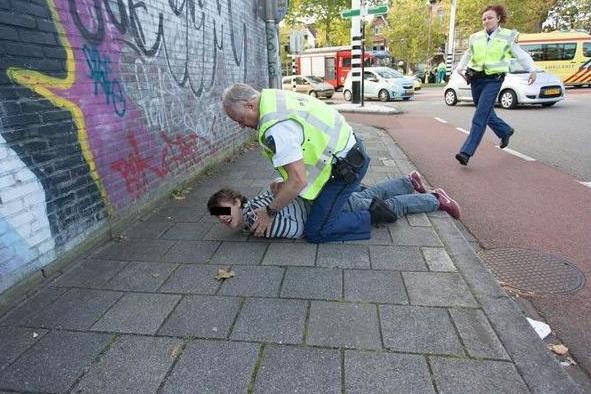 NOOT VAN DE REDACTIE: Prima actie van de politie. Blijf met je poten van hulpverleners af en laat hen ongehinderd hun werk doen. Wat bezielt zo'n snotvent eigenlijk als hij de hulpverleners gaat lastigvallen en ook nog een grote bek heeft tegen de politie? Wat voor opvoeding heeft zo'n klootzak gehad? Drie jaar werkkamp. Dat zal hem leren. Maar helaas bestaat dat hier in Nederland nog steeds niet!