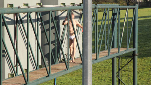 Een dolgedraaide, halfnaakte man was op de oprit van de A12 richting Brussel immers in de grote verkeersborden over de snelweg gekropen. Wat de man bezielde om -enkel in een slip gehuld- op de borden te kruipen is niet duidelijk, maar de Gazet Van Antwerpen meent te weten dat relationale problemen aan de basis liggen.
