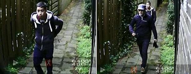 De twee jongemannen worden gefilmd als ze via het achterpad naar de tuin van de woning lopen. Daar forceren ze een glazen pui en doorzoeken de hele woning. Ze nemen onder andere een laptop, sieraden en een fotocamera mee. De bewoonster is op het moment van de inbraak even een ommetje maken met haar baby.