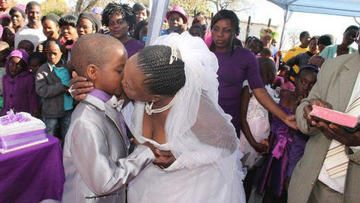 Sommige vrouwen lusten wel een jonger blaadje, maar deze 62-vrouw gaat toch wel heel ver. De Zuid-Afrikaanse Helen trouwde met de 9-jarige Saneie "omdat de voorouders het willen".