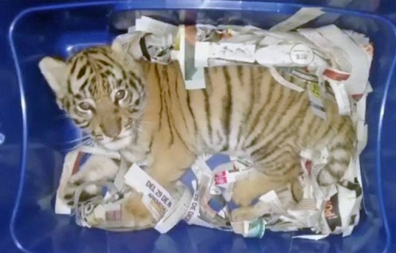 Het diertje was verdoofd en in een plastic container gestopt. De tijger moest van de staat Jalisco naar de staat Queretaro worden vervoerd, een reis van zo'n 350 kilometer.